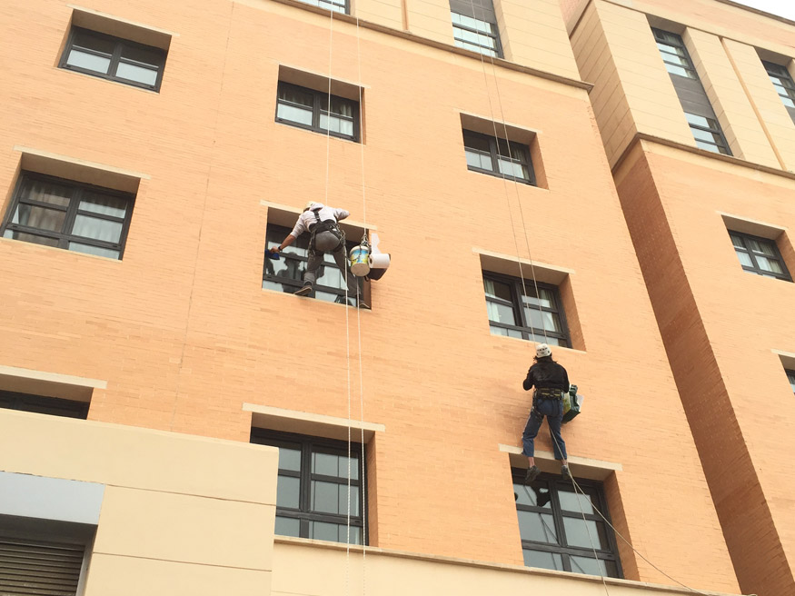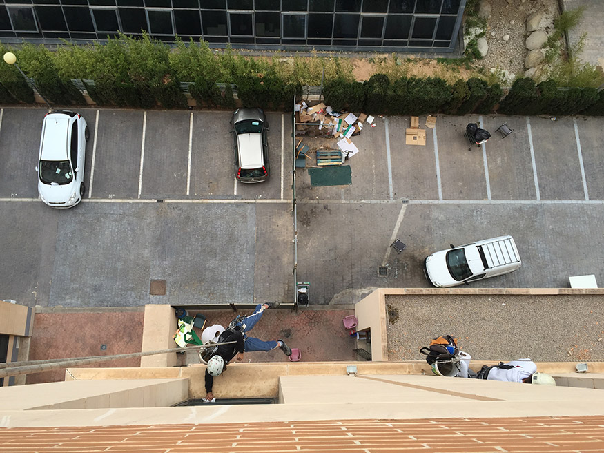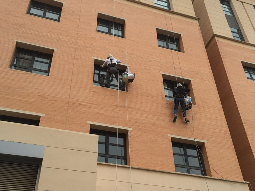 Nuestras técnicas de acceso y posicionamiento en altura mediante cuerdas, nos permiten acceder a todo lugar por inaccesible que pueda parecer de forma más rápida y segura que los tradicionales andamios, este sector de la construcción es el de menor índice de siniestralidad.